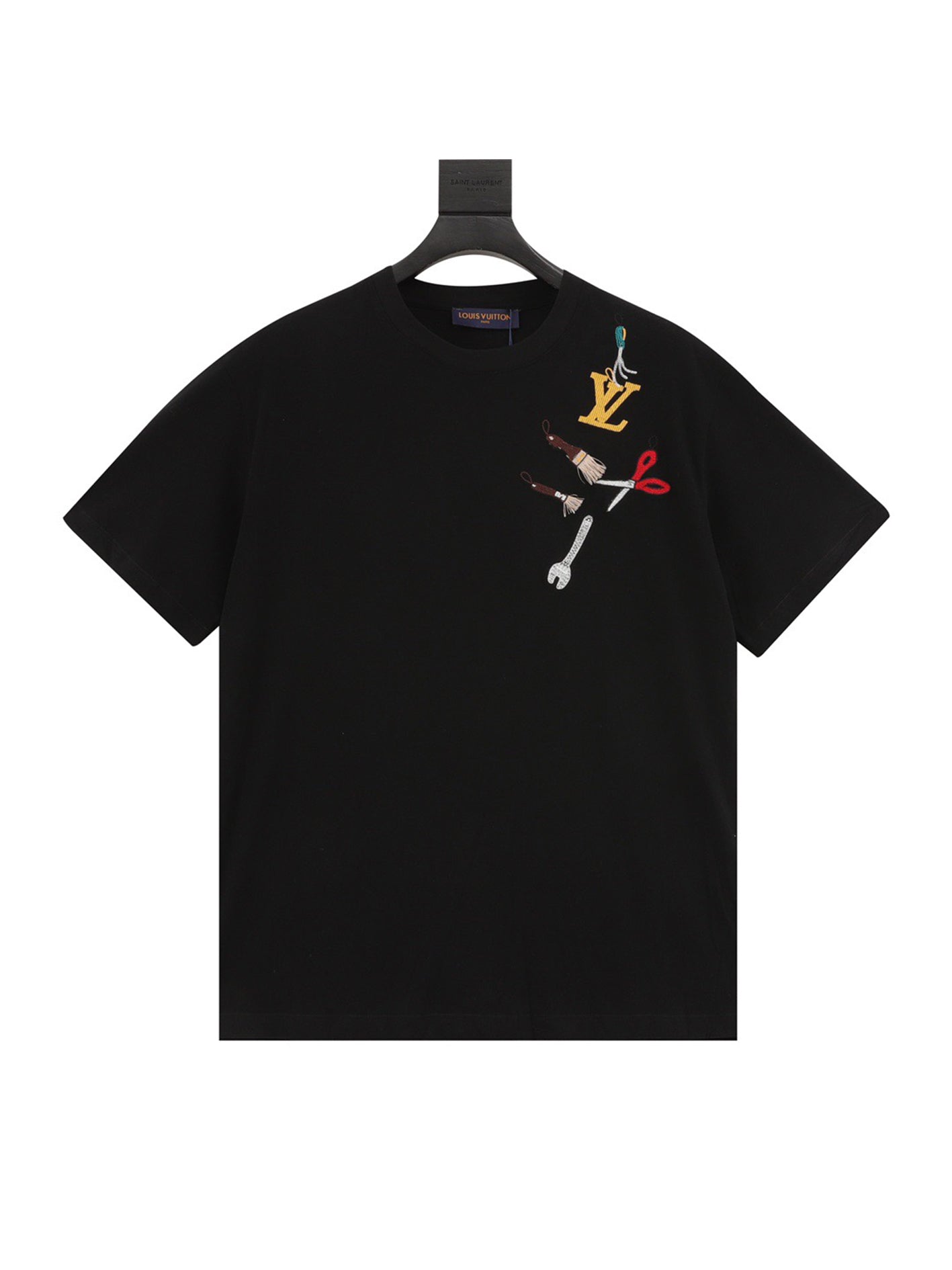 Black graphic short sleeve knit T-shirt