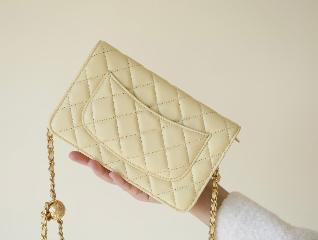Chain wallet lambskin chicken yellow